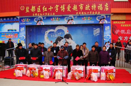 ![]() 2012年元月10日下午,在江苏盐城市盐都区龙冈镇红十字会“真情系农户,博爱慰百家”物资集中发放仪式上,龙冈镇红十字博爱超市欧特福店总经理陈星田向龙冈镇红十字会捐赠了价值5000元的保暖被,作为今年送温暖的物资一起发放给困难群众,并表示将继续以服务群众为宗旨,积极参与人道主义救助工作,扩大红十字博爱超市服务范围,为辖区内所有红会关怀者提供更优质的服务。